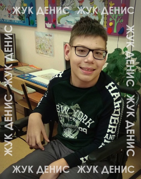 Денис очень общительный, любознательный и добрый ребенок. У него есть друзья, с которыми он общается по скайпу и ездит к ним в гости. Денис очень любит спорт. Занимается адаптационным плаваньем и параолимпийским бочче, где он достиг маленьких но результатов, участвует в соревнованиях и даже имеет грамоты и медали. Он любит посещать различные мероприятия (футбол, волейбол, музеи, выставки и различные фестивали).