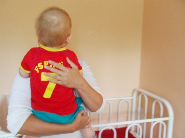 Кирилл в год с небольшим отлично ходит, но, когда ему нужно что-либо или кого-либо догнать, он начинает ползать на четвереньках (так пока у малыша получается быстрее). В целом, ему куда больше нравятся подвижные игры или танцы, чем сидячие, тихие занятия. При этом ему в радость пальчиковые игры: наблюдает, хохочет и повторяет движения. Любит сам рассматривать книжки, а с няней их ни в какую не читает. Много лепечет и даже хорошо произносит несколько простых слов. Как говорят няни, для своего возраста Кирилл хорошо развит, а «необласканность» проходит при чуткой должной заботе.