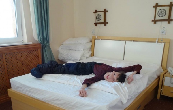 После прошлого курса реабилитации он научился, полулежа в коляске, поднимать ноги, а сейчас он очень шустро "бегает,"двигая ногами по своему желанию. Кажется, что это мелочь, но нет, это важно. Если человек долго лежит, то неминуемы пролежни, чтобы предотвратить их мне приходится часто Костю перекладывать и переворачивать. А теперь сын может немного двигаться сам, хотя и лежа.