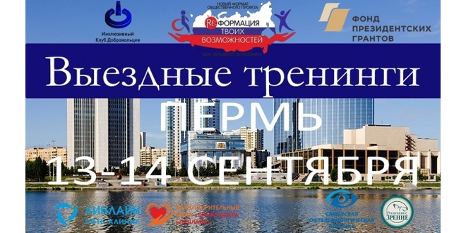 05.10.2018Благодарим за помощь для Русаковой Маргариты! 01.10.2018Студия Инклюзивного Творчества г. Самара - творчество без границ! 28.09.2018Красноярск, встречай "Re:Формацию Возможностей"! 22.09.2018Участники Самарской Студии Инклюзивного Творчества на Фестивале капоэйры! 19.09.2018Самарская Студия инклюзивного танца - участники фестиваля Inclusive Dance 2018! 17.09.2018Пермский международный форум добровольцев в г. Пермь! Приглашаем вас! 14.09.2018"Re:формация возможностей" в Перми! Спасибо за встречу! 01.09.2018С 1 сентября! С Днём Знаний и первым днём Осени! 31.08.2018«Re:формация возможностей» в Перми - присоединяйтесь! 22.08.2018Бронзова Юля - благодарим всех за помощь! 04.08.2018Молодёжный форум iВолга 2018 - спасибо всем участникам! 15.06.2018Станоженко Софья - благодарим вас за помощь для девочки! 04.06.2018Фестиваль Инклюзивного Творчества "Комби-Art" состоялся! Спасибо всем за поддержку! 01.06.2018С Международным Днём Защиты Детей! 23.05.20183 июня праздник в поддержку детей онкобольных родителей г. Санкт-Петербург! 21.05.2018Фестиваль Инклюзивного Творчества "Комби-Art"-итоговый этап соревнований 30 мая г. Самара! Примите приглашение! 19.05.2018Все об «iВолге2018» и «Инклюзивном Городке» - приглашаем к регистрации на Форум! 17.05.2018Тухфатулина Марьяна - благодарим за помощь для малышки! 15.05.2018Выставка художников из детского дома пройдет в г. Екатеринбург! Приглашаем вас! 28.04.2018VII Инклюзивный бал состоялся в г. Самара 27 апреля 2018 года! Благодарим вас! Показать ещё